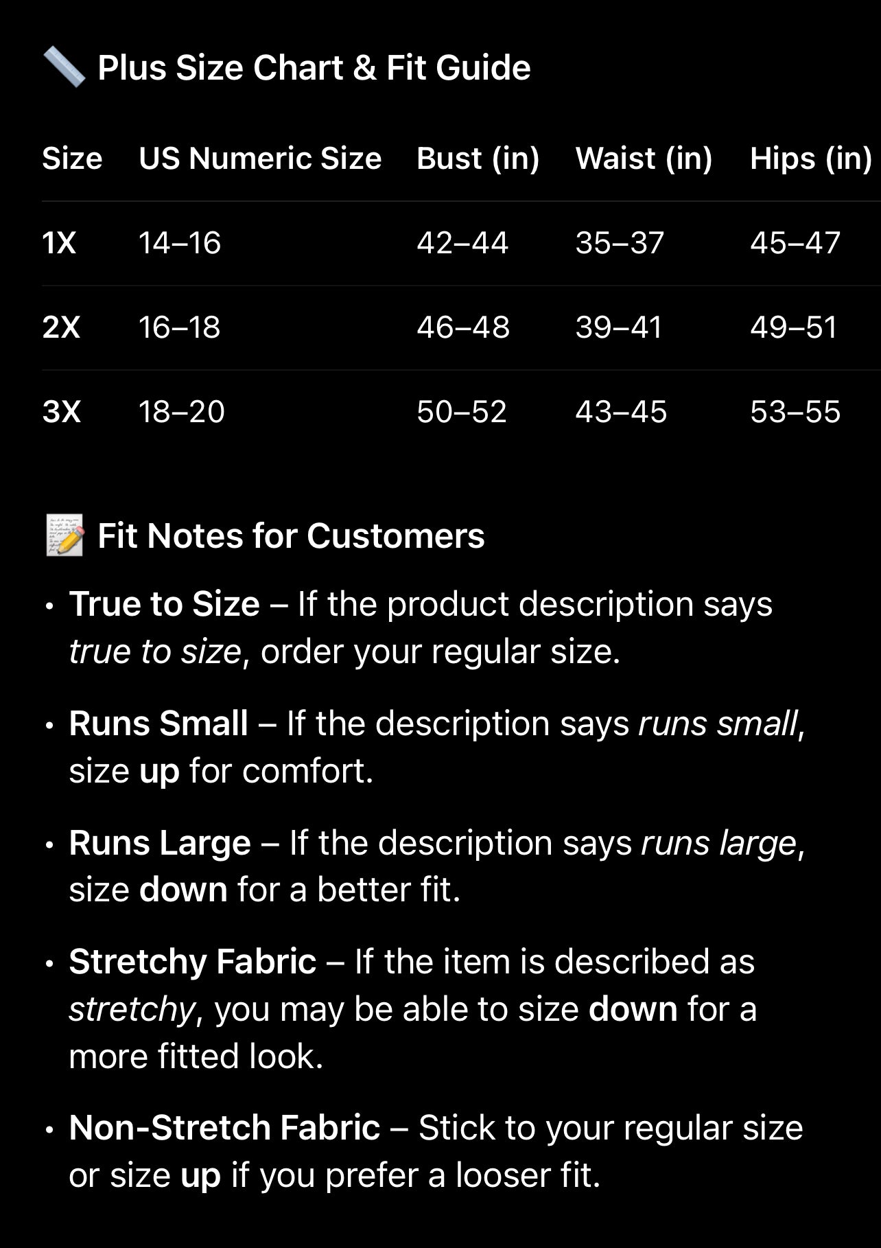 - Talla Real (True to Size) - Si la descripción dice talla real, pide tu talla habitual.